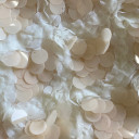Get glam with this Circular Sequin Fabric on matte black mesh.Crisp in hand with supple drape, create overlays for evening wear, sparkling circle skirts, or brilliant costumes for dance or skating! Sheer, add a lining for opacity and additional structure where required.