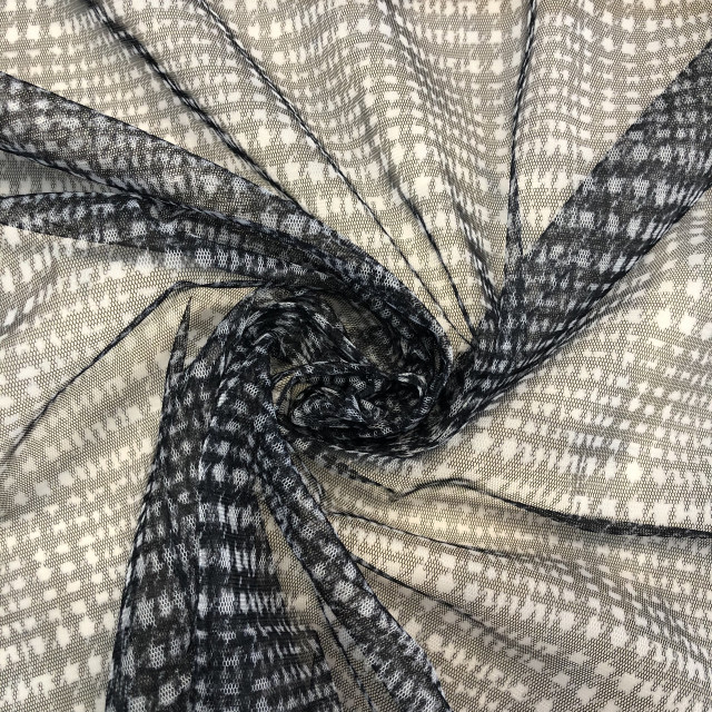 Patterned tulle with silver lurex. It is stiff and rough to the touch. It is ideal for draping. It can be used to sew: tutu skirts, dresses, shirts... You can use it for fashion details in combination with many other materials.