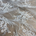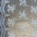 This tulle fabric is the perfect choice for those seeking unique and elegant materials for wedding dresses, veils, and formal gowns. With its romantic floral embroidery and border, Tulle S Veneta imparts a feminine touch to your new creations. The base of this fabric is transparent, and for maximum impact, we recommend pairing it with our satin materials.