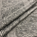 Patterned viscose knit with foil. Soft and fine, it has Lycra, which provides your clothing with additional comfort and flexibility. Impeccably thin and lightweight, it is ideal for flowy dresses, blouses, tunics, cardigans, and much more!