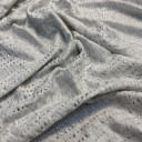 Strech Viscose Knit with elegant sliver foli print on melange ground. Extremely smooth , soft and lightweight, but still strong and durable. It breathes nad drapes well. Very comfortable to wear and also color resistent. All these caracteristics make it so versatile: create blouses, tunics, dresses, skirts and make your collection unique!