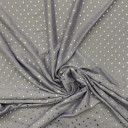 Strech Viscose Knit with elegant sliver foli print on melange ground. Extremely smooth , soft and lightweight, but still strong and durable. It breathes nad drapes well. Very comfortable to wear and also color resistent. All these caracteristics make it so versatile: create blouses, tunics, dresses, skirts and make your collection unique!