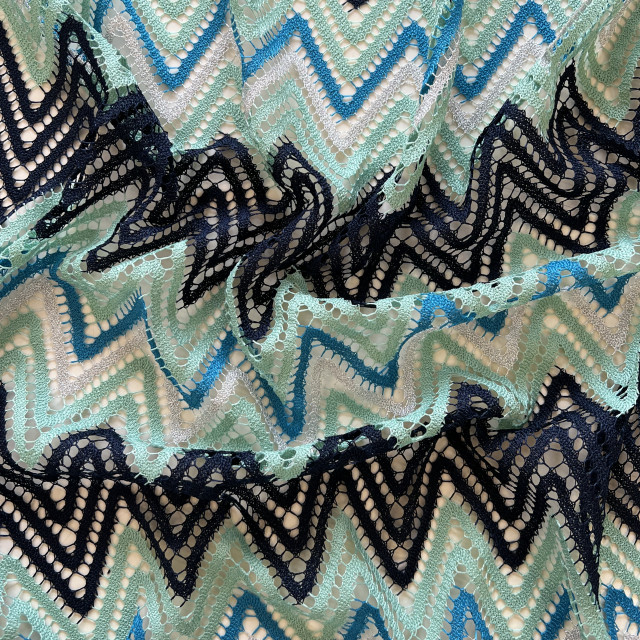 Udobna i prozračna crochet čipka sa lureksom, koja se pored letnjih, može uvrstiti i u jesenje i zimske kolekcije.Čipkasta tkanina, zbog svoje blago providne prirode nudi malo intrige, i u tren će vas odvesti od svakodnevnih dnevnih kombinacija do večernjih koktela. Ovaj nadolazeći trend, neobičnih geometrijskih oblika u toplim jesenjim i intezivnim letnjim bojama stvara jedinstvene komade, bilo da se radi o maxi ili mini haljinama, bluzama, kardiganima...