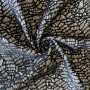 Elegantna, već postavljena čipka koju odlikuje diskretan sjaj što je čini otmenom. Odlično drži formu pa je pogodna za strukirane haljine, sakoe, jakne, pantalone, suknje… Možete je koristiti za modne detalje u kombinaciji sa mnogim drugim materijalima.