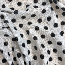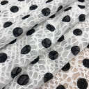 Ova dezenirana mrežasta čipka izražene teksture i mekanog opipa sa likrom, savršen je izbor za uzane lepršave haljine, bluze, suknje, kao i za program rublja. Možete je koristiti za modne detalje u kombinaciji sa mnogim drugim materijalima. Odlično izgleda i u dečijim modelima haljina, suknji, majica i najčešće se postavlja tankim pamučnim singlom ili viskozom.