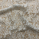 Elegantna čipka sa bogatim vezom. Cvetni dezeni ove raskošne tkanine učiniće vaše kolekcije unikatnim. Kreirajte koktel večernje haljne, suknje, otmene bluze i kardigane.