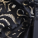 Skuba sa laser cut bordurom sa jedne strane materijala. Glatke, ali čvrste strukture, pruža savršen balans između udobnosti i stila. Laser cut bordura dodaje moderan i elegantan detalj, koji podseća na čipku. Pogodan je za izradu suknji, haljina i jakni.