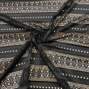 Trikotažna tkanina sa geometrijskim, čipkastim dizajnom. Mekana i prijatna na dodir. Od nje se mogu šiti bluze, haljine, majice, suknje, kaftani.. Odličan je detalj u kombinaciji sa pamucima i viskozama za košulje i ležerne majice.