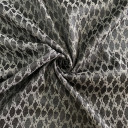 Pamučni dezenirani žakard koga odlikuje otmenost i elegancija. Blagog sjaja i čvršće strukture, pogodan je za odevne komade koje drže formu kao i za elegantna odela, suknje, haljine, blejzere… Potpuno je neproziran, pa samim tim nema potrebe za postavljanjem.