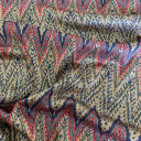 Dezenirana žakard tkanina sa zlatnim lureksom, idealna je za jesenje i zimske dane. Odlikuje je reljefasta tekstura i mekoća. Takođe je prijatna na dodir, pa je pogodna za: haljine, sakoe, pantalone, kardigane, jakne, suknje, dukserice... Potpuno je neprozirna, pa samim tim nema potrebe za postavljanjem.