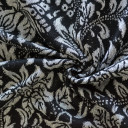 Viskozna jedinstvena žakard tkanina sa srebrnim lureksom, idealna je za jesenje i zimske dane. Odlikuje je reljefasta tekstura i mekoća. Takođe je prijatna na dodir, pa je pogodna za haljine, kardigane, jakne, suknje, tunike… Potpuno je neprozirna, pa samim tim nema potrebe za postavljanjem.