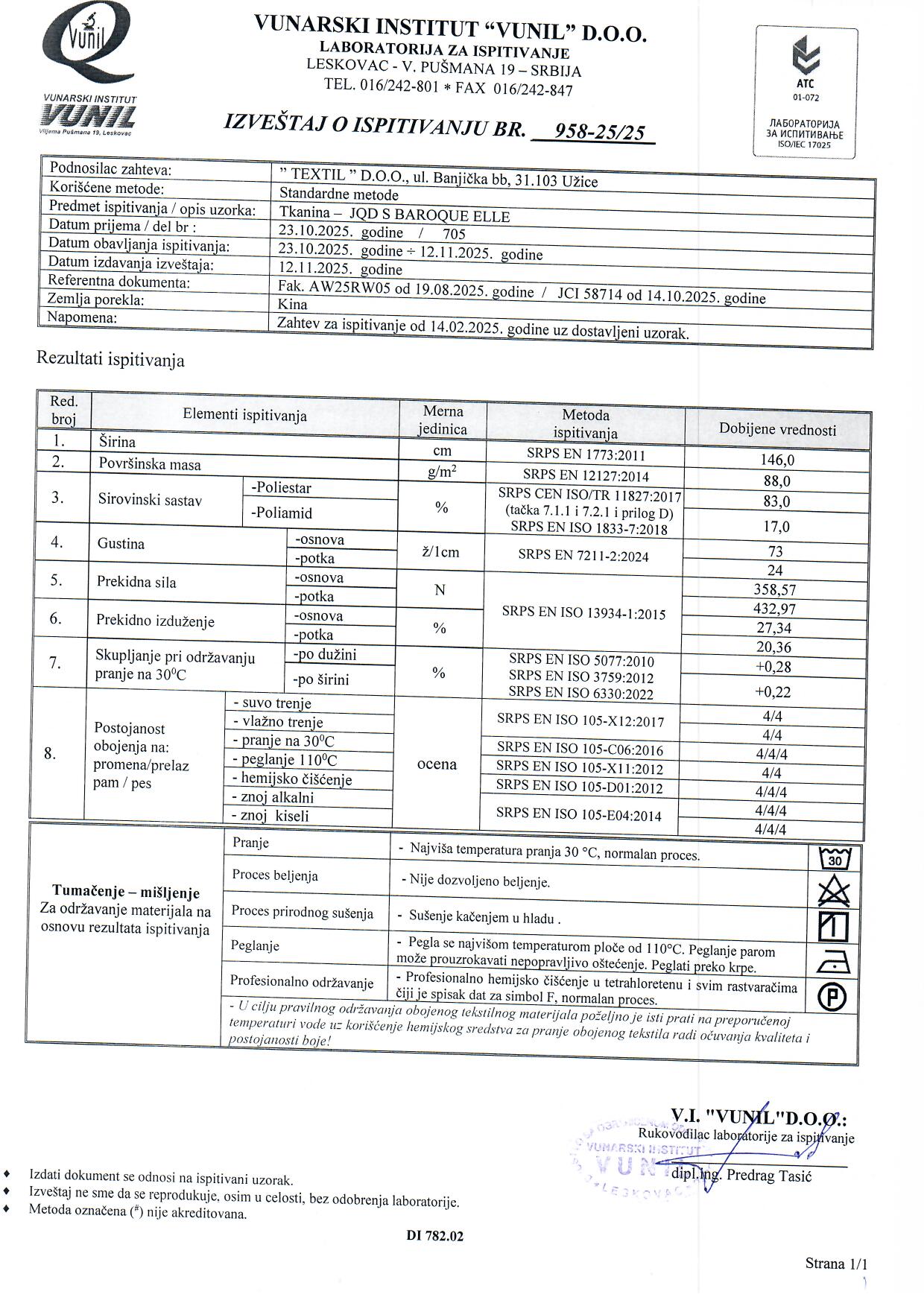 Svečani žakard materijal, lagan i prrzračant, sa izraženim reljefnim dezenom. Savršen je za svečane kolekcije koje traže luksuzan izgled uz dozu lakoće i transparentnosti. Idealan za večernje haljine, bluze, detalje na rukavima i slojevite modele koji kombinuju strukturu i prozračnost.