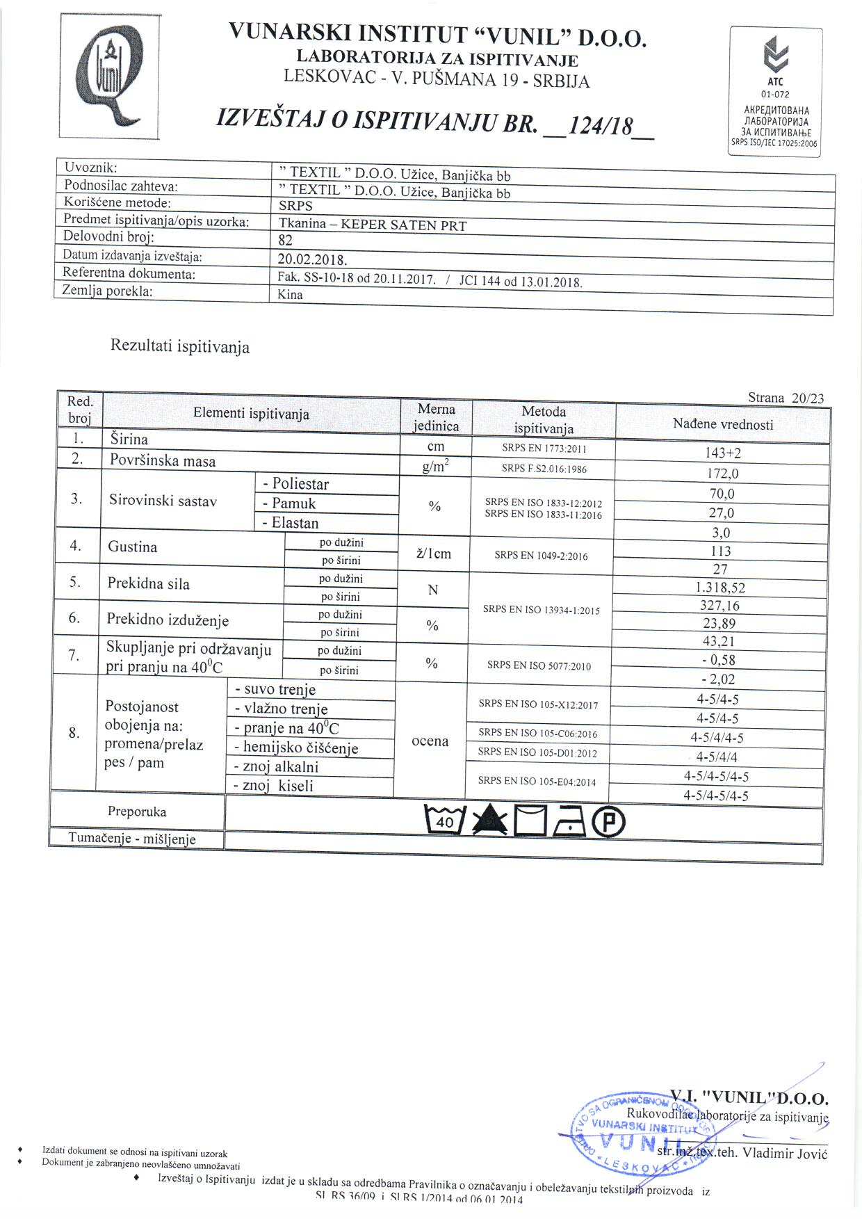 Elegantni keper sa printom, blagog sjaja, mekan i elastičan. Ova satenska taknina u našoj ponudi raspolaže velikim izborom raznovrsnih i aktuelnih dezena, od geometrijskih, cvetnih, klasičnih... Zbog svog luksuznog izgleda, ali i udobnosti odličan je za poslovne modele pantalona, sakoa, haljina i suknji. Takođe dobro izgleda i u dečijim svečanim modelima koji traže udobnost i formu.