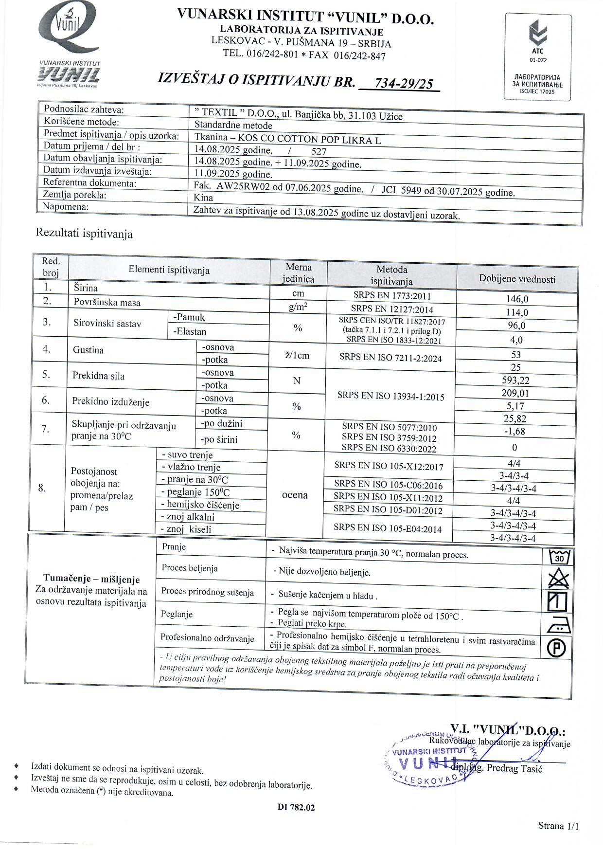 Izuzetno lagani puplin mat sjaja, sa malim procentom likre. Ima veoma jednostavnu i finu cik-cak teksturu, koja garderobu čini lagodnom i mekanom na dodir. Veoma popularan za letnji perod, ali se može koristiti i u tranzicionim, jesenjim i prolećnim kolekcijama. Najčešće se koristi za izradu kvalitetnih ženskih i muških košulja. U ženskom i dečijem programu od njega se još mogu šiti i haljine, suknje i bluze sa karnerima ili nekim drugim detaljima.