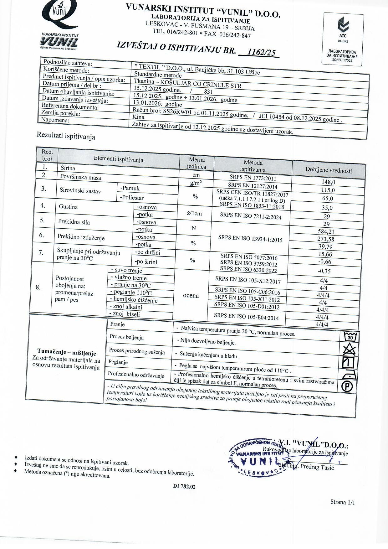 Lagani košuljar idealan za kreiranje udobne i moderne odeće. Izrađen od pamuka i poliestera, kombinuje prirodnu mekoću i prozračnost sa povećanom postojanošću i lakoćom održavanja. Karakteristična crinkle (zgužvana) struktura u kombinaciji sa suptilnim prugastim dezenom daje tkanini vizuelnu dinamiku i savremeni izgled. Namenjena je prvenstveno za košulje, bluze, haljine i ležerne modne komade, kako za ženske, tako i za dečije kolekcije.