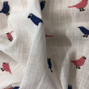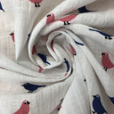 Prirodna pamučna tkanina sa životinjskim dizajnom ptica, idealna za dečije kolekcije. Raspolaže sa nežnom paletom pastelnih tonova, koja će osvežiti vaše kolekcije. Mekan i udoban, idealan za kreiranje haljina, košulja, majica, šortseva.