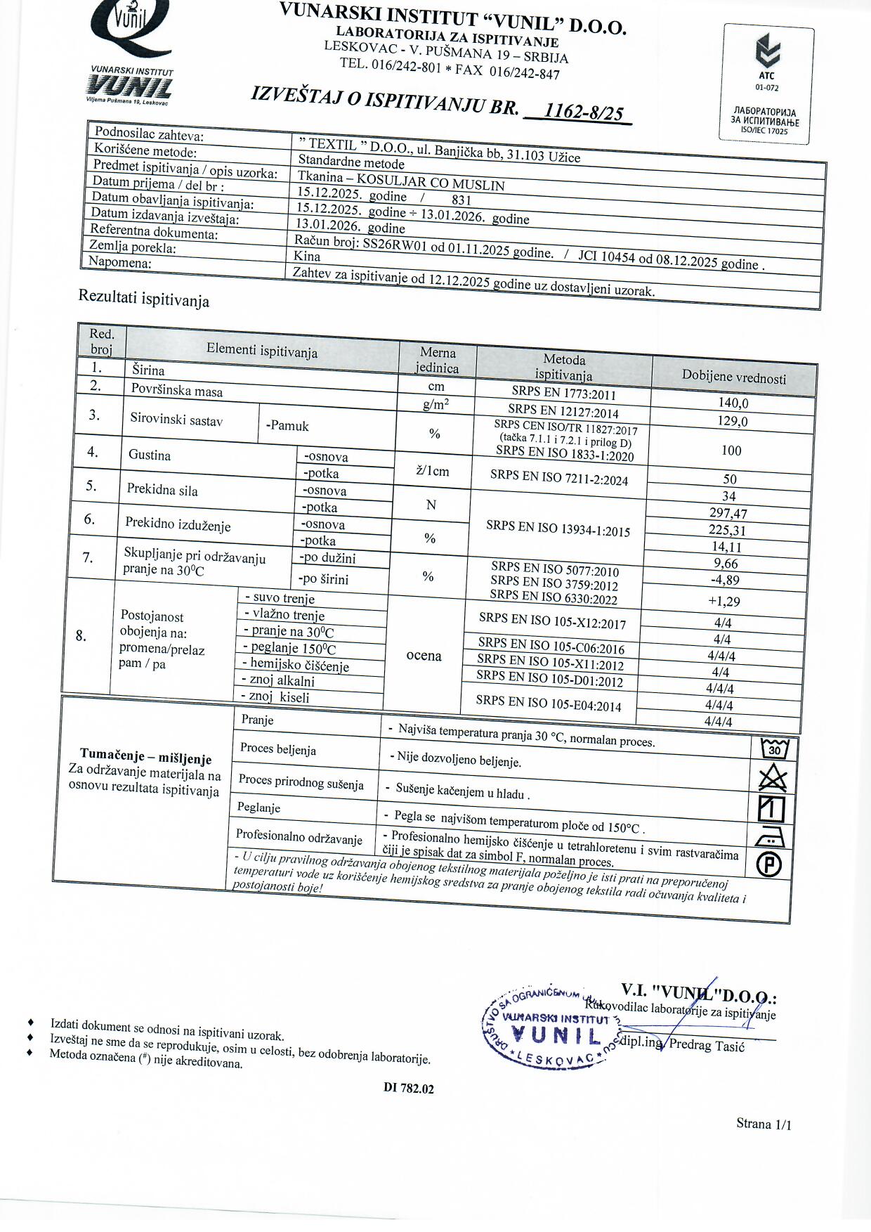 Prirodni muslin od 100% pamuka, poznat i kao pamučna gaza, idealan je izbor za izradu udobne, prozračne i nežne odeće. Njegova meka tekstura i lagano tkanje čine ga savršenim za širok spektar namena – od kežual košulja, haljina i letnjih setova do nežnog dečijeg programa i spavaćeg rublja.