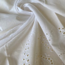 100% pamuk sa vezenom bordurom sa jedne strane materijala. Prijatan i mekan na dodir, dobar je izbor za tople letnje dane. Ovu atraktivnu pamučnu tkaninu pretvorite u haljine, suknje, kaftane za plažu, tunike, bluze...