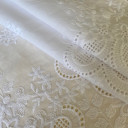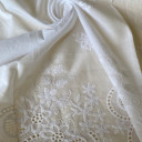 100% pamuk sa vezenom bordurom sa jedne strane materijala. Prijatan i mekan na dodir, dobar je izbor za tople letnje dane. Ovu atraktivnu pamučnu tkaninu pretvorite u haljine, suknje, kaftane za plažu, tunike, bluze...