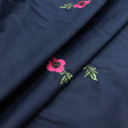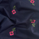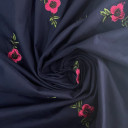 Prirodna pamučna tkanina sa cvetnim vezom u boji. Njen atraktivan dizajn uneće u vaše kolekcije pravo osveženje. Zbog svog pamučnog sastava veoma je mekana i glatka pa je pogodna za šivenje ležernih haljina, košulja, tunika.