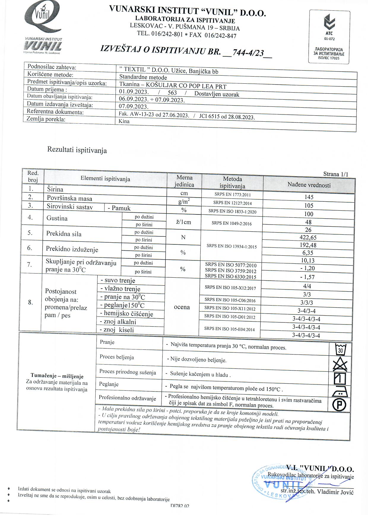 Iako se trudimo da boje prikazemo što verodostojnije, one se na sajtu mogu razlikovati od stvarnih. Takodje postoje I varijacije u zavisnosti od uređaja sa kog se posmatra. Zbog toga vam toplo preporučujemo da pre kupovine robe, poručite uzorak. Cena jednog uzorka je 3,00 EUR. Dimenzije uzorka su 10x10cm. Jedan uzorak može da ima maksimalno 5 boja, u okviru jednog artikla / robe. Ukoliko ste u nedoumici da artikal moze da se proda, dok uzorak stigne kod vas, možete kontaktirati Textil korisničku podršku ili postaviti pitanje na chat-u.