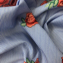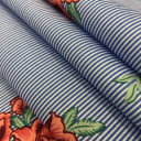 Pamučna tkanina sa klasičnim dizajnom uskih pruga. Mekana i udobna tkanina, pravi je izbor za letnje dane. Zbog svog prirodnog sastava ne isteže se po širini. Kreirajte ležerne haljine, strukirane košulje, majice sa karnerima.