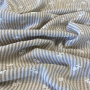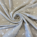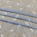 Lagana tkanina sa reljefnim prugama i sitnim floralnim vezom, izrađena od 100% poliestera. Kombinuje klasičan prugasti dezen sa nežnim detaljima koji dodaju romantičan i ženstven karakter. Materijal je lak za održavanje i prijatan za nošenje, što ga čini odličnim izborom za svakodnevne i sezonske komade. Preporučena primena: bluze, tunike, lagane haljine, košulje.