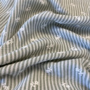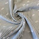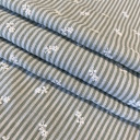 Lagana tkanina sa reljefnim prugama i sitnim floralnim vezom, izrađena od 100% poliestera. Kombinuje klasičan prugasti dezen sa nežnim detaljima koji dodaju romantičan i ženstven karakter. Materijal je lak za održavanje i prijatan za nošenje, što ga čini odličnim izborom za svakodnevne i sezonske komade. Preporučena primena: bluze, tunike, lagane haljine, košulje.