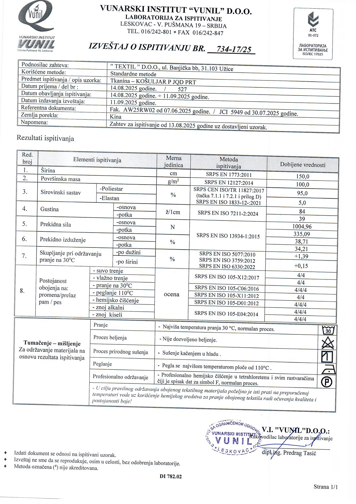 Košuljar P JQD PRT je lagana poliesterska tkanina sa printom, žakard efektom i blagim sjajem. Ne gužva se, jednostavna je za održavanje i zadržava postojanost boje, što je čini praktičnim, ali i stilskim rešenjem za svakodnevne i svečane odevne kombinacije. Idealna je za košulje, bluze, haljine i tunike.