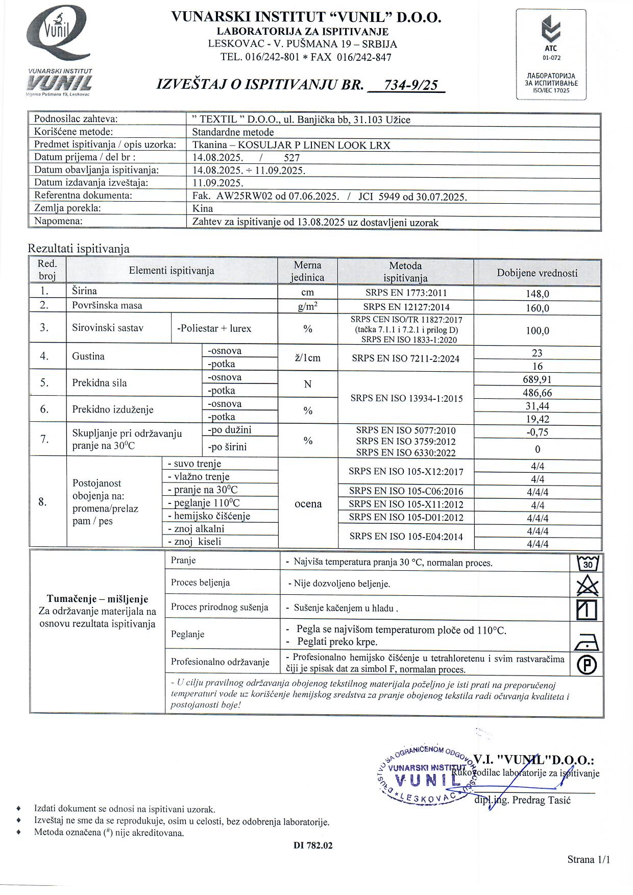 Košuljar P Linen Look LRX je tkanina izrađena od kvalitetnog poliestera sa dodatkom lureksa, koja svojim izgledom podseća na lan. Ima blago rustičnu strukturu sa diskretnim sjajem, zahvaljujući nitima lureksa koje joj daju elegantan i svež izgled. Lagana, prozračna i prijatna za nošenje, savršena za izradu košulja, bluza, laganih haljina i letnjih pantalona. Ne gužva se i zadržava formu, što je čini odličnim izborom za svakodnevne i svečanije odevne kombinacije.