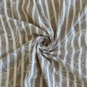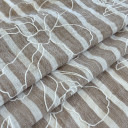 Lagani letnji materijal sa efektom prirodnog lana, ukrašen nežnim prugicama i cvetnim motivima koji donose osvežavajuću mešavinu romantike i klasike. Water puff tehnika štampe stvara suptilan reljefni efekat.Tkanina je lagana, prijatna na dodir i laka za održavanje, a pritom se ne gužva. Idealna je za letnje haljine, košulje, kimone, tunike.