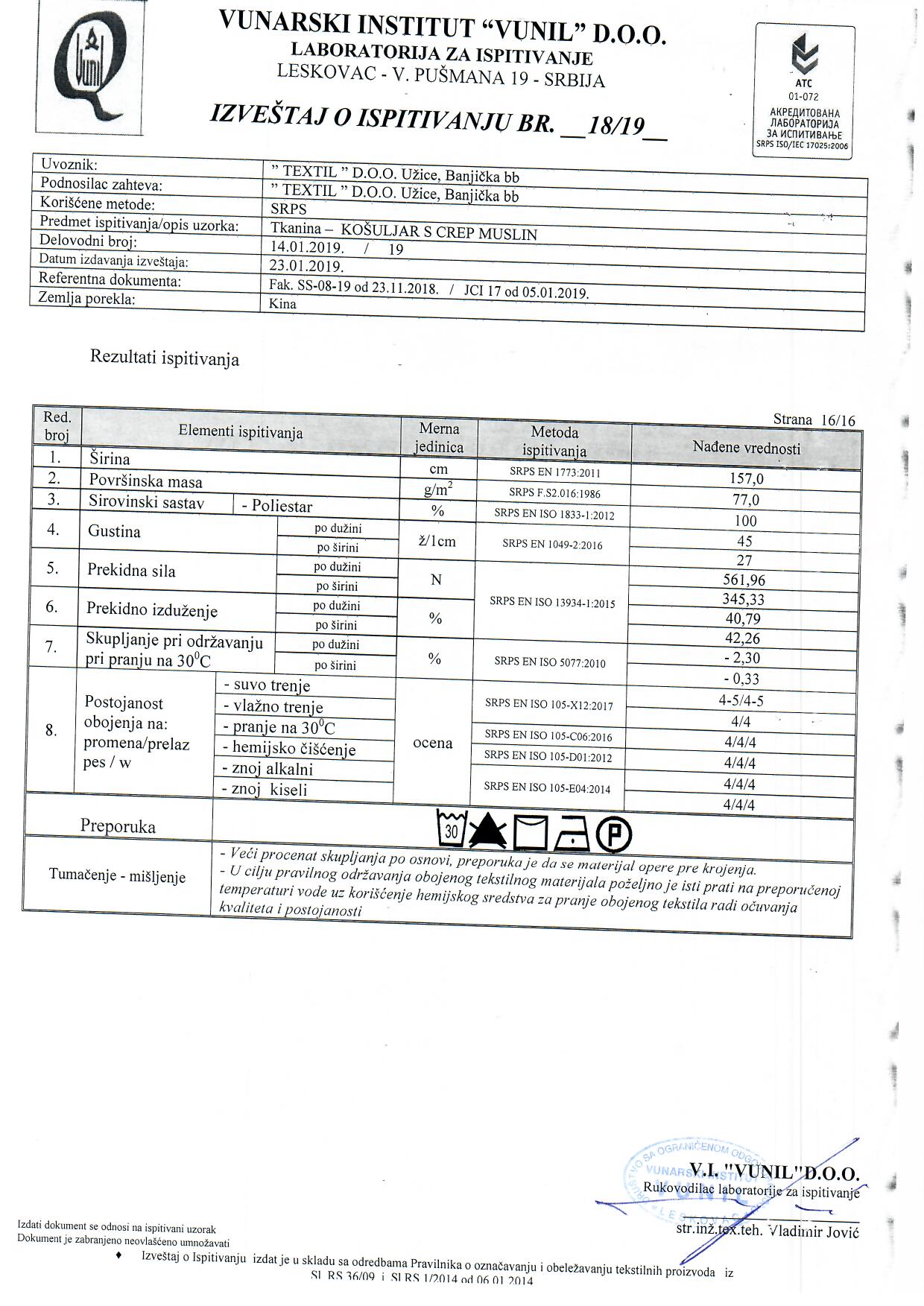 Lagana i providna tkanina sa zrnastom, crep stukturom, koja joj daje jedinstven opip i odličan pad. Meko, nežno, ugodno se sjedinjuje sa telom, a ne ograničava pokrete i ne trlja, formira graciozne nabore. Raspolaže atraktivnom paletom boja koja je prilagođena bilo kojoj sezoni. Iskoristite ovaj materijal na najbolji mogući način i dizajnirate lepršave košulje i bluze, haljine, ali imajte na umu da je proziran pa preporučujemo postavljanje.
