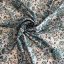 Lagani i prozračni muslin sa digitalnim printom. Ova vrsta štampe omogućava postizanje neverovatnih efekata na tkanini, izuzetnu preciznost, perfektan otisak i postojanost boja. Pored toga odlikuje ga veoma lep pad i krepast opip. Od njega se mogu šiti: slojevite haljine, tunike, bluze, suknje. Podloga je prozirna, pa se može postaviti po želji.