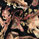 Sofisticiran, lagani šifon sa plišastim flock printom koji mu daje punoću i mekan opip. Sva svojstva ovog materijala omogućuju stvaranje odeće u kojoj ćete se osećati posebno, ali i udobno. Idelana za svečane i lux kolekcije za elegantne ogrtače, košulje, tunike, haljine i još mnogo toga! U Textilovoj ponudi pronađite veliki izbor različitih dezena koji zadovoljavaju sve ukuse!