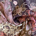 Lagani i prozračni muslin sa digitalnim printom i lureksom. Odlikuje ga veoma lep pad i krepast opip. Od njega se mogu šiti: slojevite haljine, tunike, bluze, suknje. Podloga je prozirna, pa se može postaviti po želji.