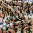 Lagani i prozračni muslin sa digitalnim printom i lureksom. Odlikuje ga veoma lep pad i krepast opip. Od njega se mogu šiti: slojevite haljine, tunike, bluze, suknje. Podloga je prozirna, pa se može postaviti po želji.