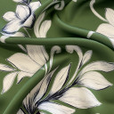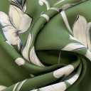 Digitalno štamapani saten prefinjenog sjaja. Ovaj materijal je nežan na dodir, lagan i lepršav. Izuzetno je prilagodljiv i pogodan za kreiranje elegantnih odevnih predmeta poput haljina, košulja, bluza, kombinezona i kimona. Može se takođe koristiti i za spavaćice, luksuzne pidžame i raskošne ogrtače. Materijal je neprovidan, nema potrebe za postavljanjem.