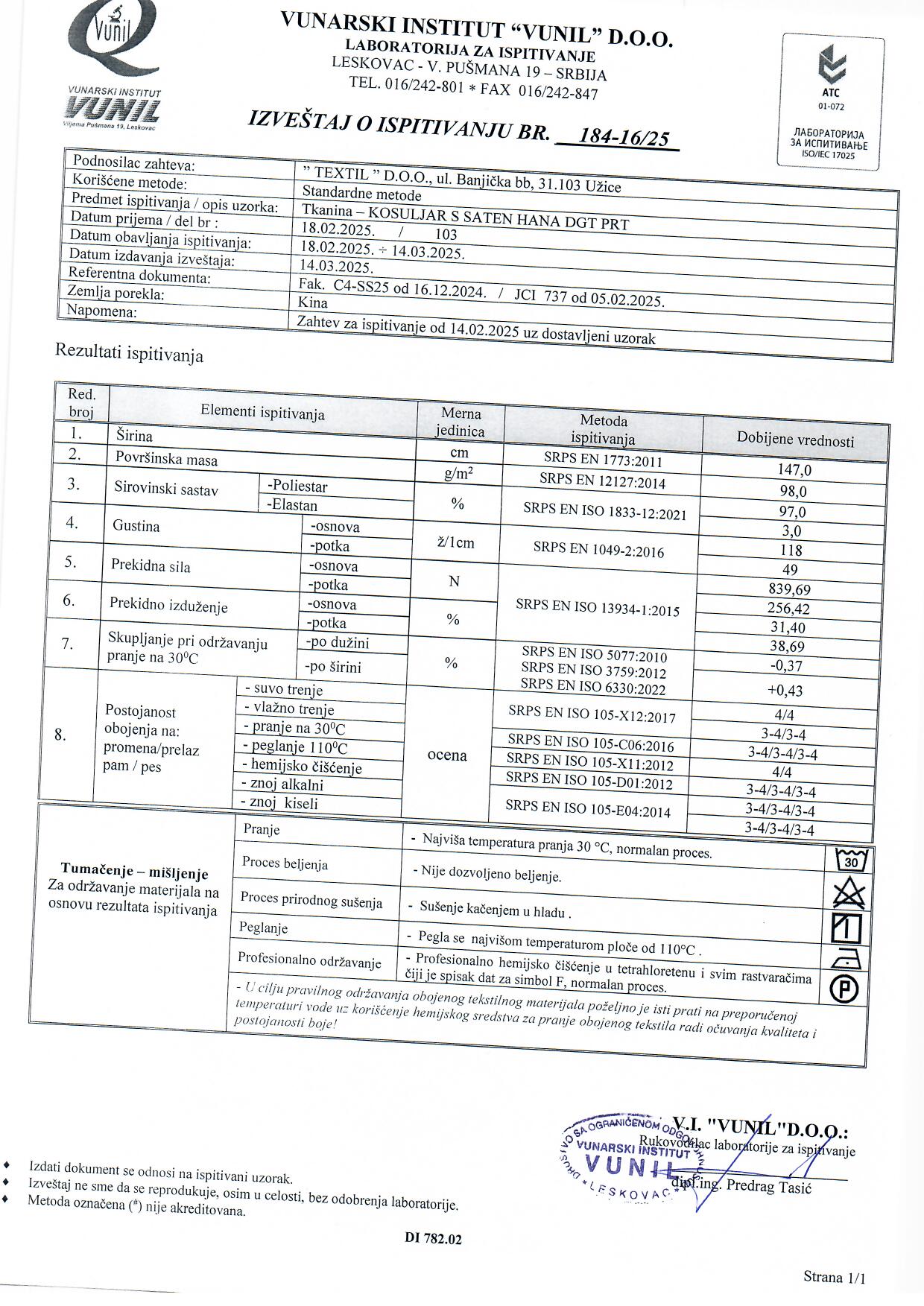 Digitalno štamapani saten prefinjenog sjaja. Ovaj materijal je nežan na dodir, lagan i lepršav. Izuzetno je prilagodljiv i pogodan za kreiranje elegantnih odevnih predmeta poput haljina, košulja, bluza, kombinezona i kimona. Može se takođe koristiti i za spavaćice, luksuzne pidžame i raskošne ogrtače. Materijal je neprovidan, nema potrebe za postavljanjem.