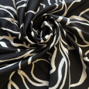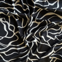 Digitalno štamapani saten prefinjenog sjaja. Ovaj materijal je nežan na dodir, lagan i lepršav. Izuzetno je prilagodljiv i pogodan za kreiranje elegantnih odevnih predmeta poput haljina, košulja, bluza, kombinezona i kimona. Može se takođe koristiti i za spavaćice, luksuzne pidžame i raskošne ogrtače. Materijal je neprovidan, nema potrebe za postavljanjem.