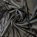 Digitalno štamapani saten prefinjenog sjaja. Ovaj materijal je nežan na dodir, lagan i lepršav. Izuzetno je prilagodljiv i pogodan za kreiranje elegantnih odevnih predmeta poput haljina, košulja, bluza, kombinezona i kimona. Može se takođe koristiti i za spavaćice, luksuzne pidžame i raskošne ogrtače. Materijal je neprovidan, nema potrebe za postavljanjem.