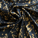 Digitalno štamapani saten prefinjenog sjaja. Ovaj materijal je nežan na dodir, lagan i lepršav. Izuzetno je prilagodljiv i pogodan za kreiranje elegantnih odevnih predmeta poput haljina, košulja, bluza, kombinezona i kimona. Može se takođe koristiti i za spavaćice, luksuzne pidžame i raskošne ogrtače. Materijal je neprovidan, nema potrebe za postavljanjem.