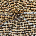 Digitalno štamapani saten prefinjenog sjaja. Ovaj materijal je nežan na dodir, lagan i lepršav. Izuzetno je prilagodljiv i pogodan za kreiranje elegantnih odevnih predmeta poput haljina, košulja, bluza, kombinezona i kimona. Može se takođe koristiti i za spavaćice, luksuzne pidžame i raskošne ogrtače. Materijal je neprovidan, nema potrebe za postavljanjem.
