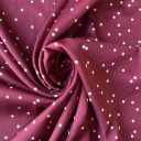 Digitalno štamapani saten prefinjenog sjaja. Ovaj materijal je nežan na dodir, lagan i lepršav. Izuzetno je prilagodljiv i pogodan za kreiranje elegantnih odevnih predmeta poput haljina, košulja, bluza, kombinezona i kimona. Može se takođe koristiti i za spavaćice, luksuzne pidžame i raskošne ogrtače. Materijal je neprovidan, nema potrebe za postavljanjem.