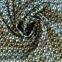 Digitalno štamapani saten prefinjenog sjaja. Ovaj materijal je nežan na dodir, lagan i lepršav. Izuzetno je prilagodljiv i pogodan za kreiranje elegantnih odevnih predmeta poput haljina, košulja, bluza, kombinezona i kimona. Može se takođe koristiti i za spavaćice, luksuzne pidžame i raskošne ogrtače. Materijal je neprovidan, nema potrebe za postavljanjem.