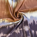 Digitalno štamapani saten prefinjenog sjaja. Ovaj materijal je nežan na dodir, lagan i lepršav. Izuzetno je prilagodljiv i pogodan za kreiranje elegantnih odevnih predmeta poput haljina, košulja, bluza, kombinezona i kimona. Može se takođe koristiti i za spavaćice, luksuzne pidžame i raskošne ogrtače. Materijal je neprovidan, nema potrebe za postavljanjem.