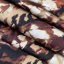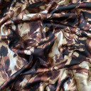 Digitalno štamapani saten prefinjenog sjaja. Ovaj materijal je nežan na dodir, lagan i lepršav. Izuzetno je prilagodljiv i pogodan za kreiranje elegantnih odevnih predmeta poput haljina, košulja, bluza, kombinezona i kimona. Može se takođe koristiti i za spavaćice, luksuzne pidžame i raskošne ogrtače. Materijal je neprovidan, nema potrebe za postavljanjem.