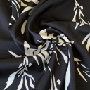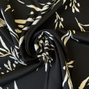 Digitalno štamapani saten prefinjenog sjaja. Ovaj materijal je nežan na dodir, lagan i lepršav. Izuzetno je prilagodljiv i pogodan za kreiranje elegantnih odevnih predmeta poput haljina, košulja, bluza, kombinezona i kimona. Može se takođe koristiti i za spavaćice, luksuzne pidžame i raskošne ogrtače. Materijal je neprovidan, nema potrebe za postavljanjem.