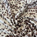 Štampani saten prefinjenog sjaja. Materijal je nežan na dodir, lagane teksture i lepog pada. Idealan je za kreiranje elegantnih odevnih komada poput haljina, košulja, bluza, kombinezona i kimona. Takođe je pogodan za spavaćice, luksuzne pidžame i ogrtače. Ova tkanina je neprovidna, stoga nema potrebe za postavljanjem.