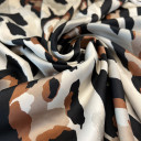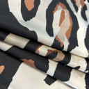 Štampani saten prefinjenog sjaja. Materijal je nežan na dodir, lagane teksture i lepog pada. Idealan je za kreiranje elegantnih odevnih komada poput haljina, košulja, bluza, kombinezona i kimona. Takođe je pogodan za spavaćice, luksuzne pidžame i ogrtače. Ova tkanina je neprovidna, stoga nema potrebe za postavljanjem.