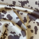 Štampani saten prefinjenog sjaja. Materijal je nežan na dodir, lagane teksture i lepog pada. Idealan je za kreiranje elegantnih odevnih komada poput haljina, košulja, bluza, kombinezona i kimona. Takođe je pogodan za spavaćice, luksuzne pidžame i ogrtače. Ova tkanina je neprovidna, stoga nema potrebe za postavljanjem.